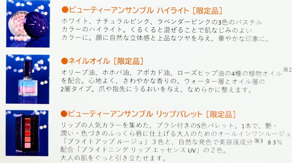 この冬は「夜空にきらめくイルミネーションにインスパイアされた、華やかな6品」の限定コフレとなっております♪♪♪